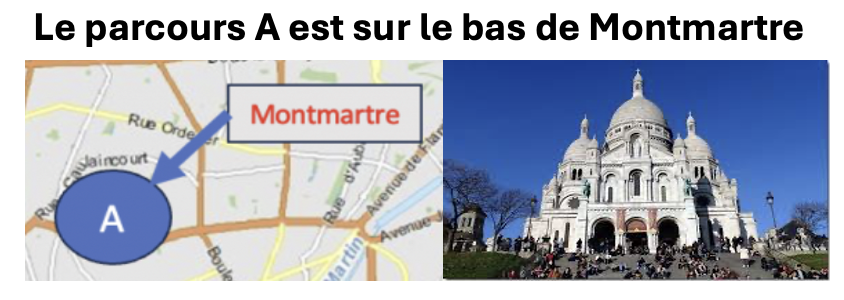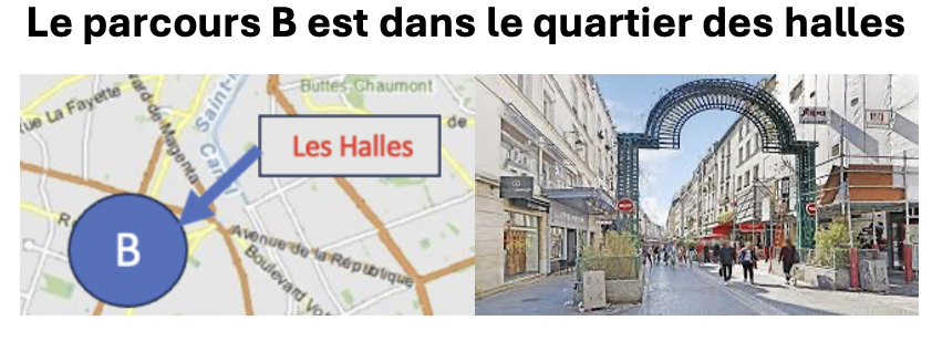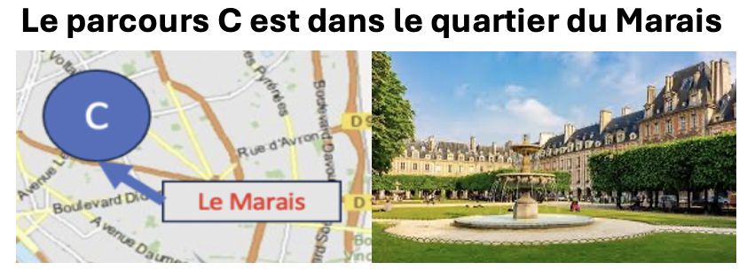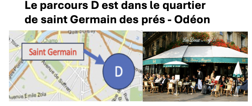 On vous propose 4 parcours qui correspondent à 4 quartiers Paris, de façon à ce que vous puissiez choisir un parcours ou on dégustera plus des douceurs (patisserie, chocolat, macarons …) ou plus du salé (fromage, charcuterie ..) ou un parcours mixte. Votre choix peut aussi être fait en fonction du quartier afin de lier histoire et expérience gustative. Sur la carte vous pouvez voir les 4 lieux A B C ou D