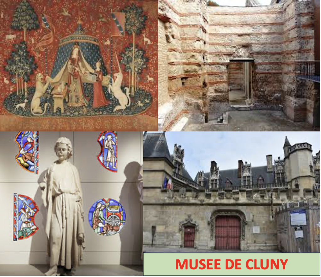 - CLUNY: national museum of medieval art, located in the magnificent ancient covent and former roman bath from the 2nd century. It exhibit the most famous tapestry from the middle age: the lady with the unicorn