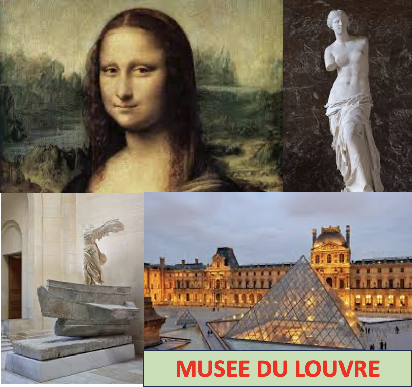- LOUVRE: most visited museum in the world, exhibiting artifacts from 4000bc to 1848, including Greek and Egyptians antiquities, Renaissance and french romantic painters from the 19th century